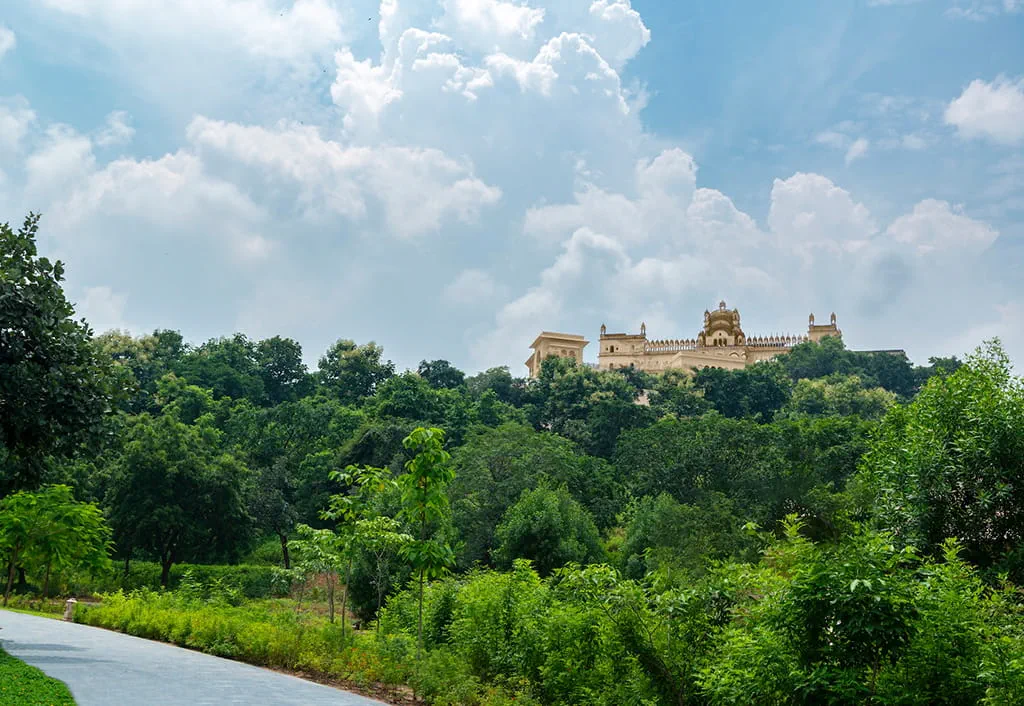 The Oberoi Sukhvilas entrance, 5-star resort amidst lush greenery